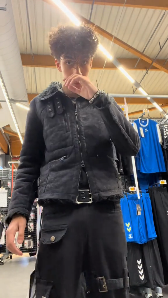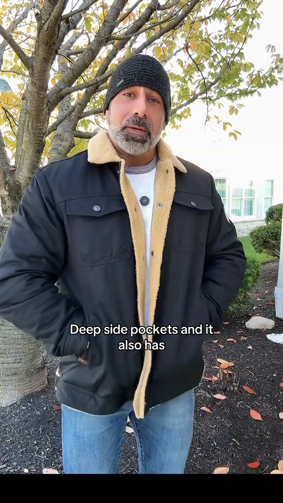 Black Jacket with Beige Fleece Lining & Chest Pockets