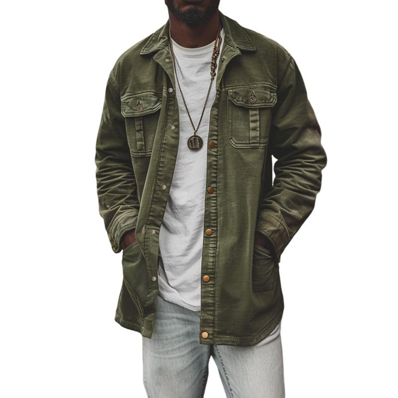 Men's Vintage Corduroy Washed Lapel Mid-length Multi-pocket Work Jacket 57083402M