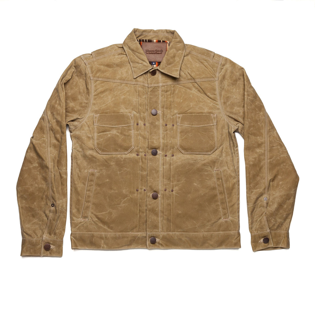 (Tall) Flannel Lined Waxed Trucker Jacket in Field Tan
