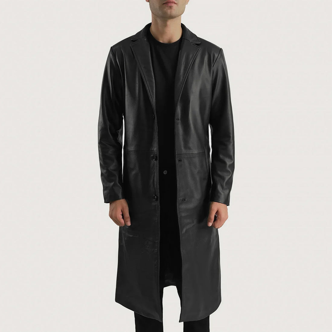 Mateo Black Leather Single Breasted Coat