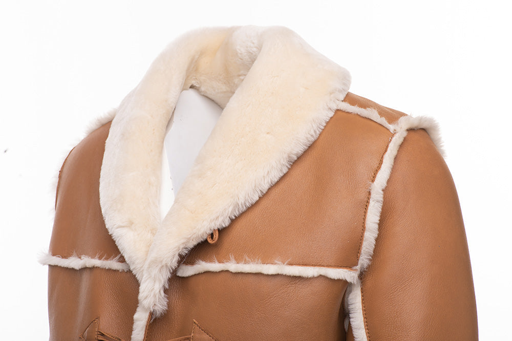 Missed getting the crowd’s attention with your high-end long coats but can’t get a hold of the trendy and exceptional ones lately? Don’t worry, for we bring your way the most looked out for Ace Western Long Shearling Coat which is getting serious attention for its high and endless durability. The splendidly fabricated coat is composed of 100% Heavy USA-made double-faced sheepskin shearling supported by a 100% sheepskin shearling interior. To ensure a sleek look, it exhibits a unique shawl-style collar and front toggle closure with open hem cuffs. Lastly, the sophisticated long shearling coat comes in pleasant brown color.