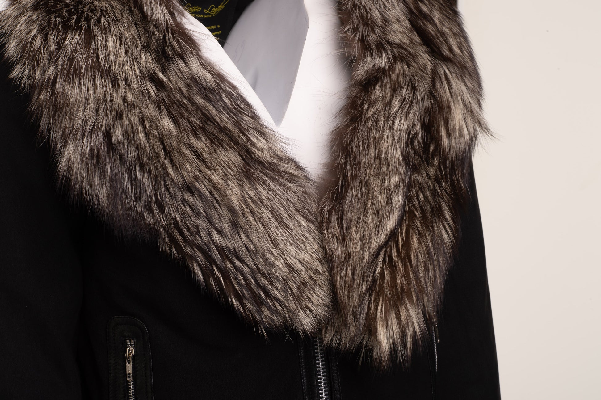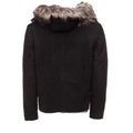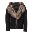 Allen Black Nubuck Leather jacket with Real Fox Fur on collar and hoodie