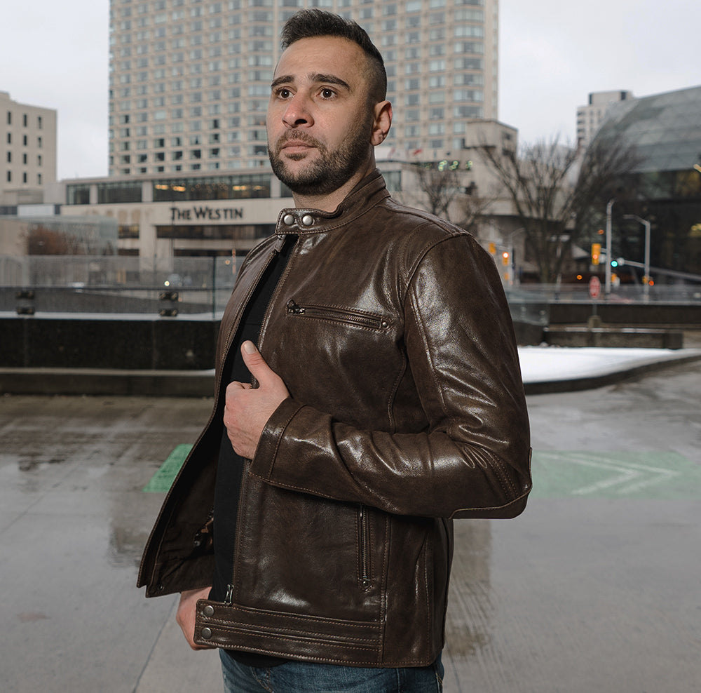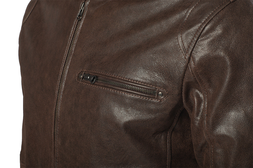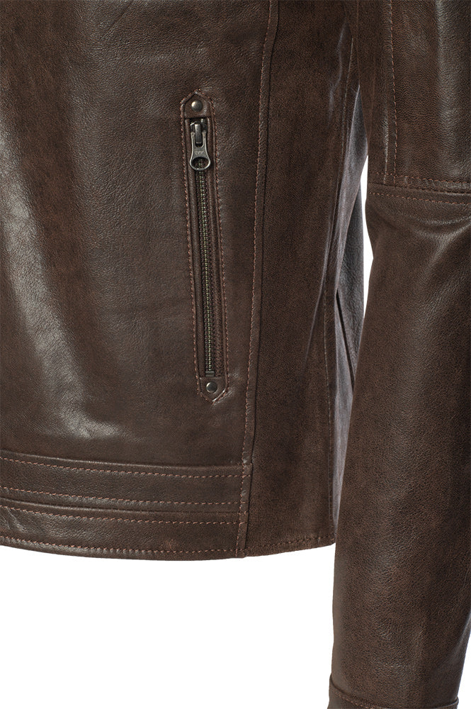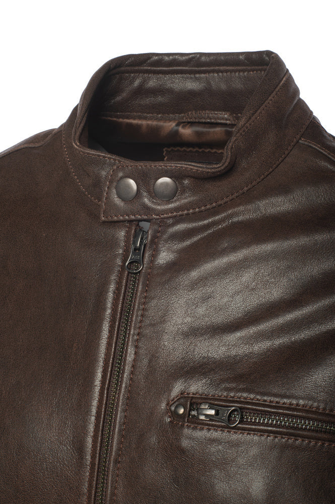 Revamp your closet with this latest version of Vintage brown café racer leather jacket. It has all the elements of wonderful jacket you want in your leather jacket. Manufactured by using full-grain leather which is both durable and long lasting. When you wear it, the overall appearance of this leather jacket is really good enough to add attitude in your personality. It has round collar and front is fastened with a zip closure.
