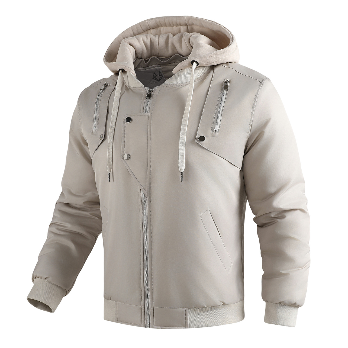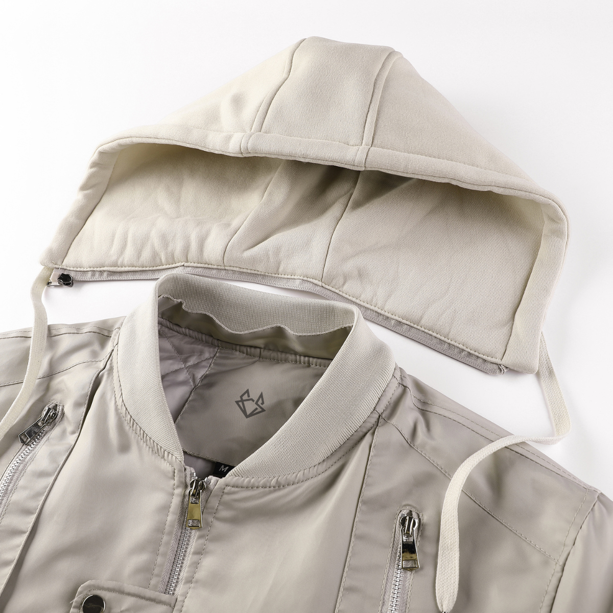 Step out in style with the Axel Hooded Lightweight Jacket, a perfect blend of fashion and function for the urban explorer. This jacket offers a sleek, modern design with a removable hood, tailored for versatility and ease of movement. Its lightweight construction makes it ideal for layering during transitional weather. Equipped with multiple zippered pockets, it ensures your belongings are secure and easily accessible. Ideal for daily wear or light outdoor activities, this jacket keeps you prepared and stylish in any setting.