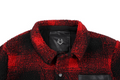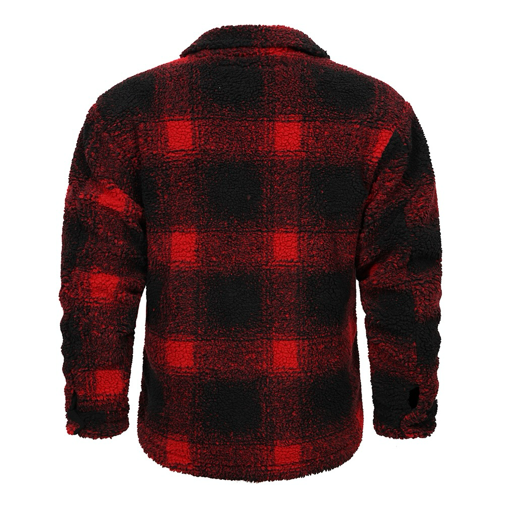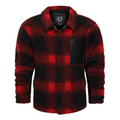 This rugged yet cozy jacket combines classic plaid in red and black with a plush sherpa lining for unparalleled warmth and comfort. Featuring a stylish button-up front and a practical chest pocket in contrasting black, this piece is both functional and fashionable. The durable outer fabric ensures lasting wear, while the soft inner lining keeps you snug on chilly days.