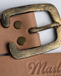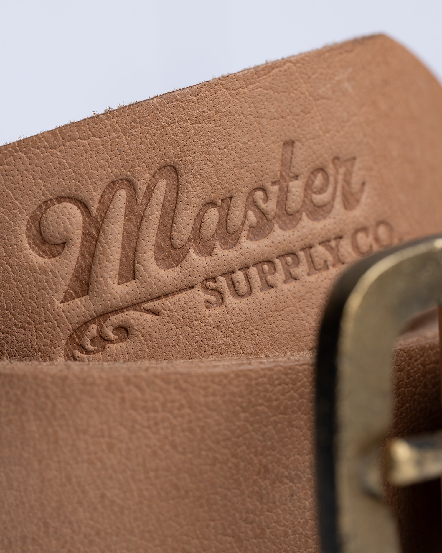 Crafted for the long haul, our Master Supply Co leather belts are a rugged and versatile addition to your collection. Made from 100% vegetable-tanned buffalo leather, these belts boast a robust 4.2mm thickness, ensuring durability and longevity. The solid brass hardware is built to last, while the Master embossed adds subtle branding.