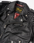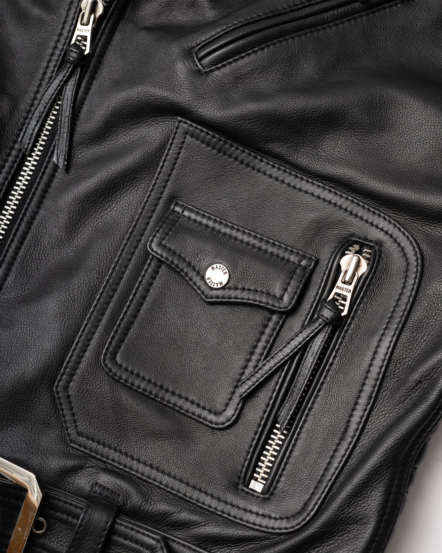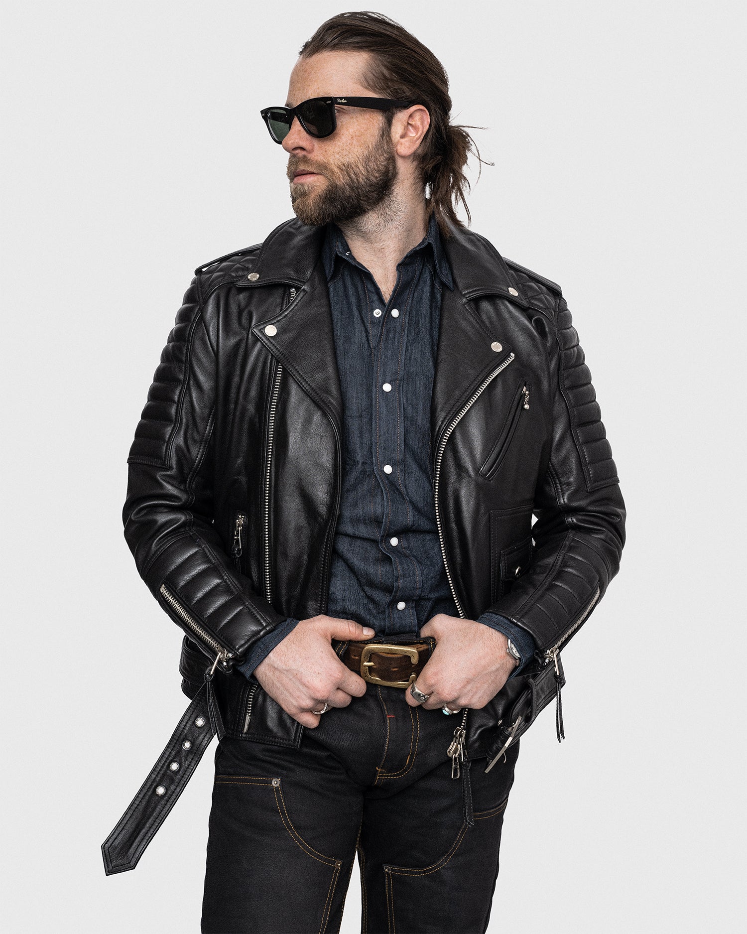 The new collar design is a unique twist on the classic double-rider style and adds to the jacket’s rugged and effortlessly cool look. To complete the package, the 10mm main zippers are accented by a 7mm ball and chain breast pocket. The hardware selection for this piece adds a nice touch of grit to the jacket’s personality.