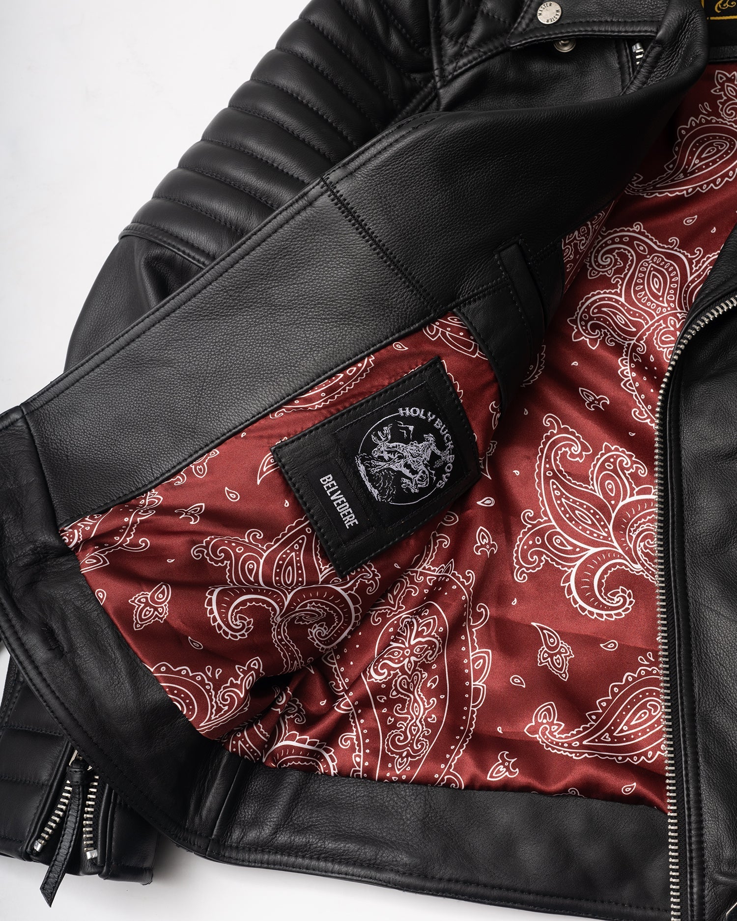 Inside, you’ll find two spacious interior pockets, perfect for stashing all your essentials safely. The red paisley liner is a nod to classic rock and roll style, adding an extra bit of charm to this already tough-as-nails jacket.