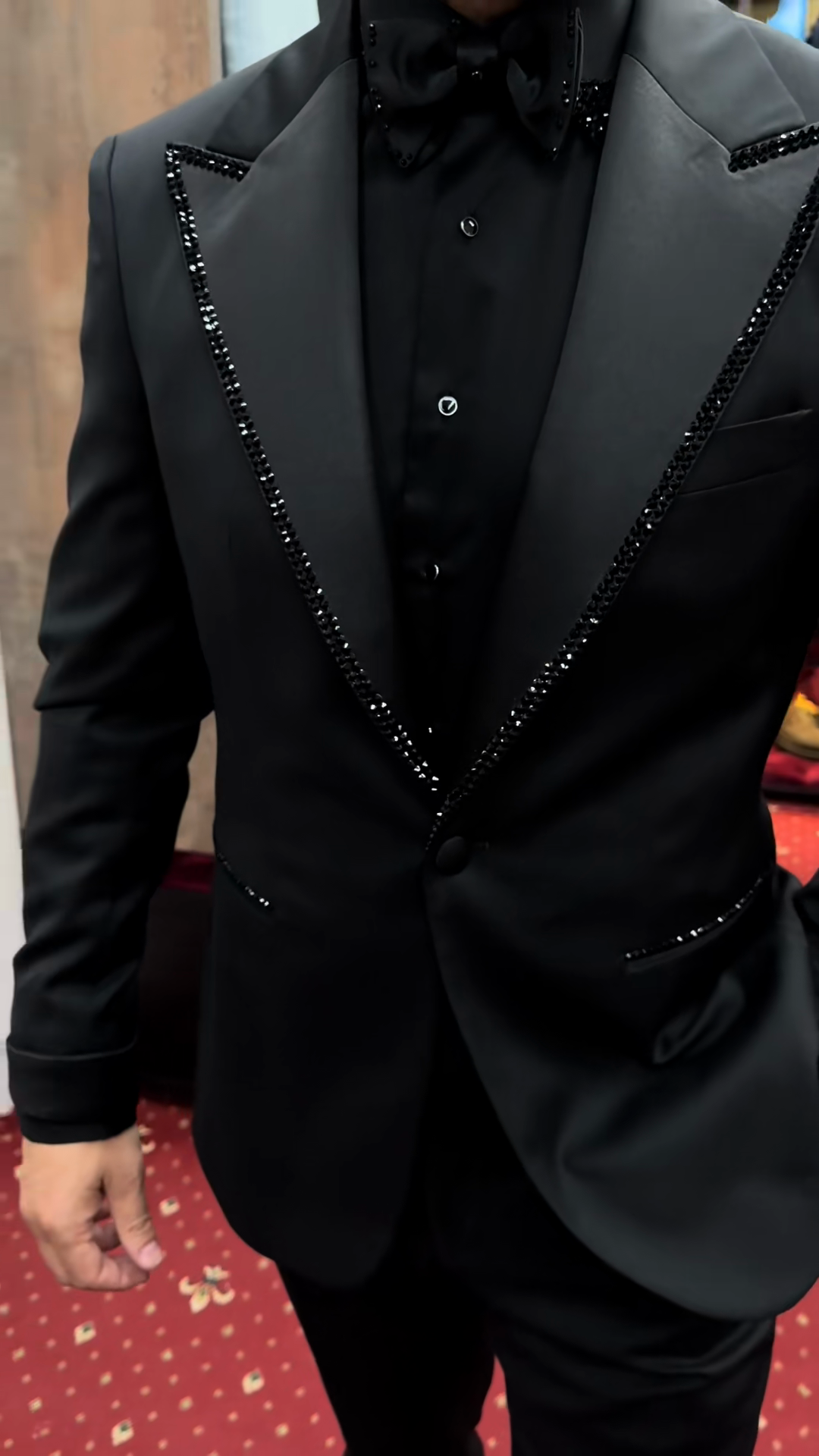 Black Embellished Tuxedo Suit