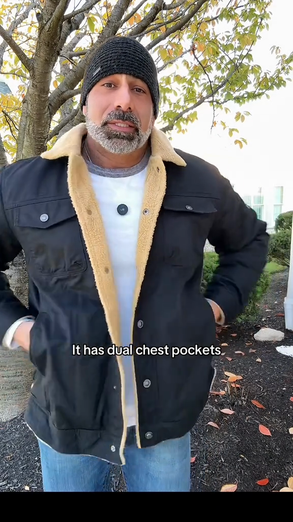 Black Jacket with Beige Fleece Lining & Chest Pockets
