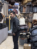 Black Leather Jacket in a Fur