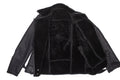 Get a luxurious yet simple biker jacket that can enhance your look so well while protecting you from the harsh winter breeze. A black on black shearling biker jacket can make you look exceptional without taking much effort. With a zipper closure for easy wear, collar and notch lapels, zip cuffs, 1 pocket inside and 2 functional pockets outside to make your hands warm.