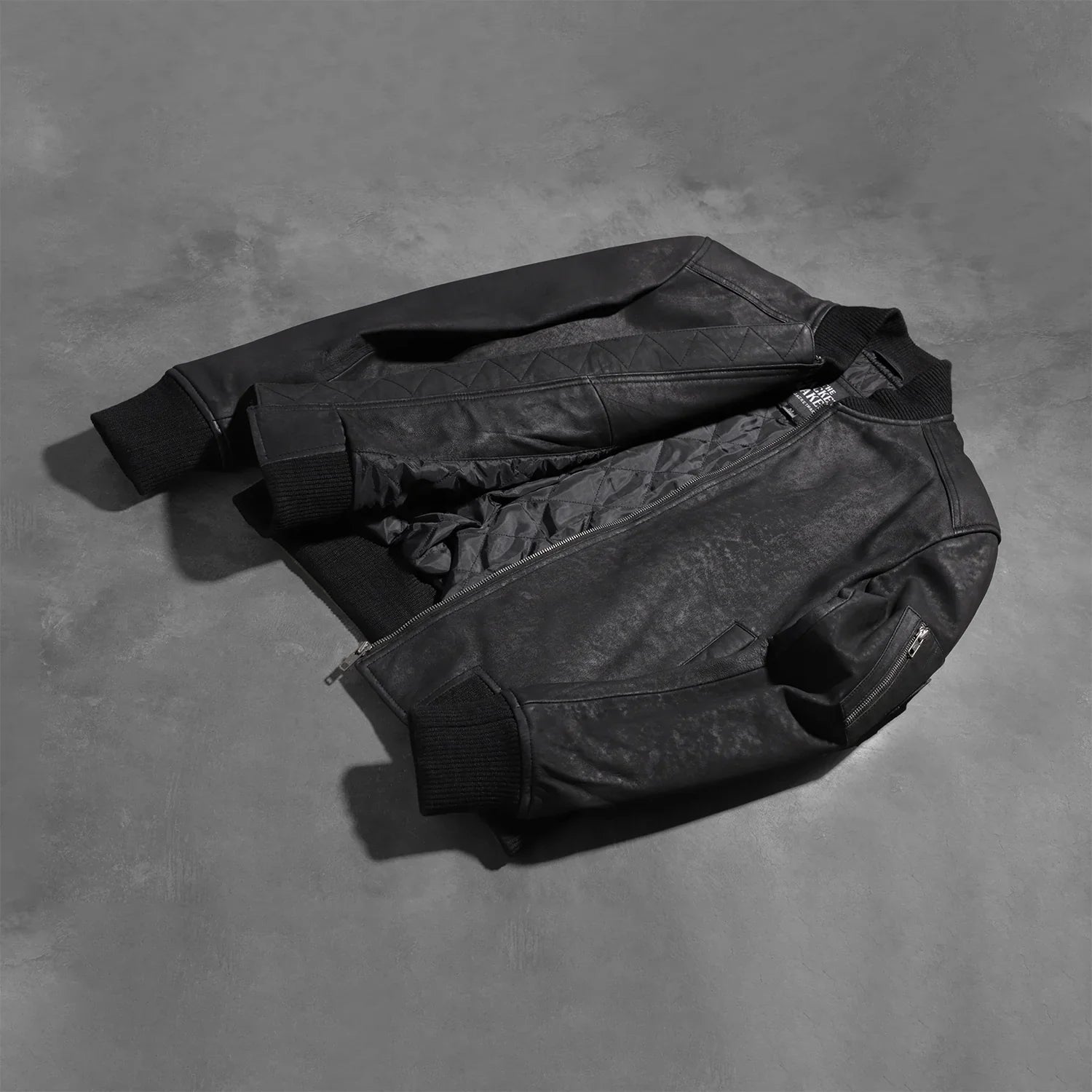 Bomia Ma-1 Distressed Black Leather Bomber Jacket
