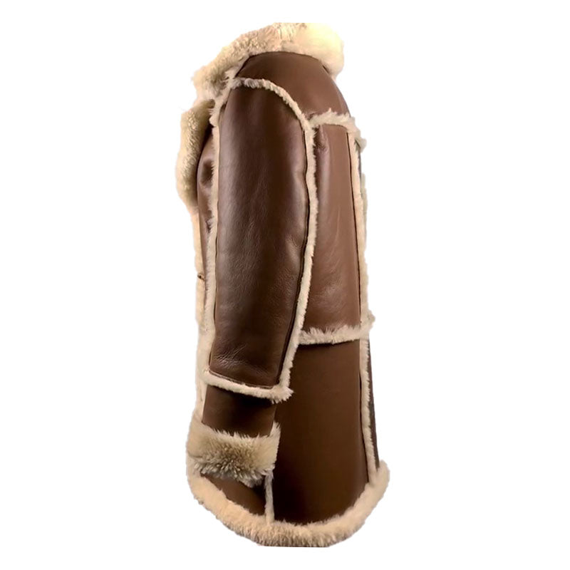 When the temperature drops, everyone breaks out their warmest outerwear, from jackets to overcoats, to show off. When it comes to looking glamorous at a party, a shearling overcoat has always come first in line. This very gratifying Brock's Brown shearling overcoat is made up of 100% fine Spanish merino double-faced sheepskin shearling. The jacket has full-length sleeves which have open hem fur cuffs. The shirt-like collar and lapel give this overcoat a very enchanting touch.