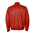 Do you wish to experiment with a trendy and expensive-looking jacket? You've come to the right place because this MA-1 red bomber leather jacket with stretch leather hems and cuffs is the epitome of the style you're aiming for. This trendy jacket has a zipper closure, a elastic round collar, and a stretch leather waist and hems, making it both warm and comfortable.