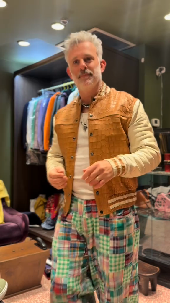 Brown Croc - Embossed Leather Varsity Jacket