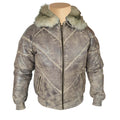 Casper's V-Bomber style Puffer Winter Leather Jacket with White Fox fur collar