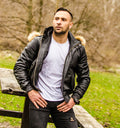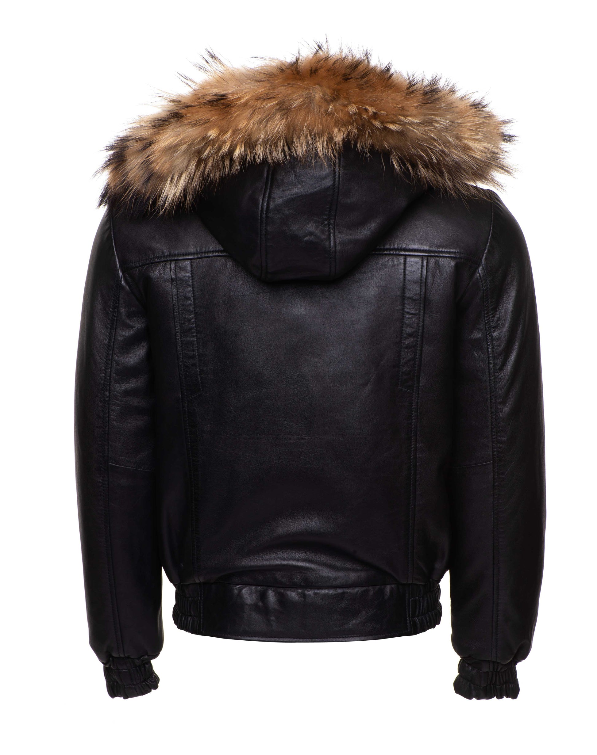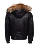 Castillos bomber Winter Leather Jacket with Real fox fur hoodie