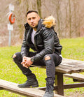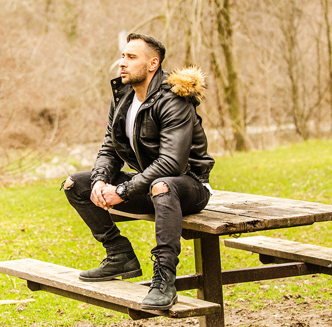 Want to experience some real excitement this season? We have the Castillo's bomber winter leather jacket with fox fur hood to satisfy all your dressing needs. This jacket has a real fox fur hoodie which can be removed as well so that you can opt for many looks you want. Other than that it has a zipper closure, elastic cuffs, 1 pocket inside, and 3 zipper pockets outside.