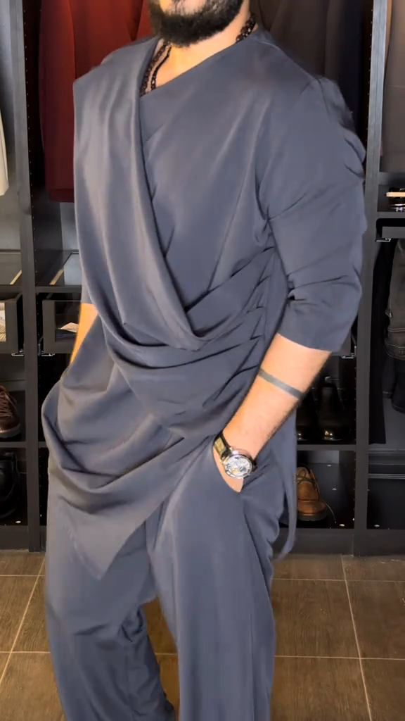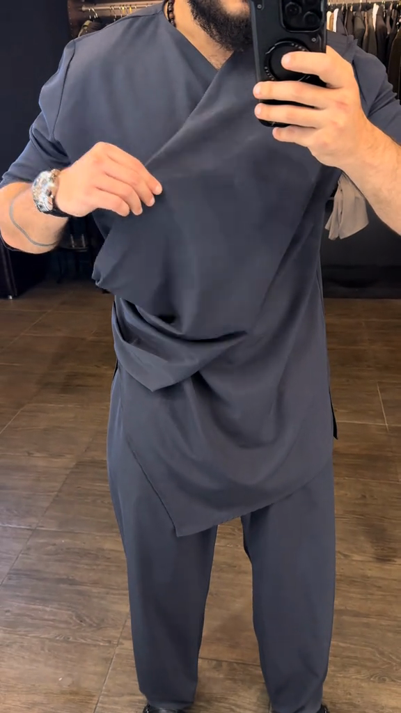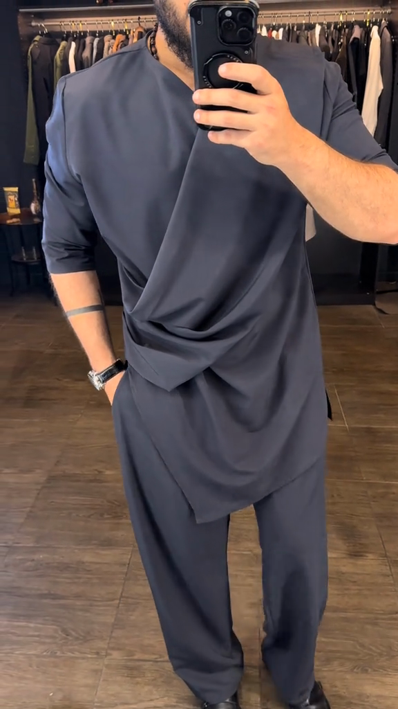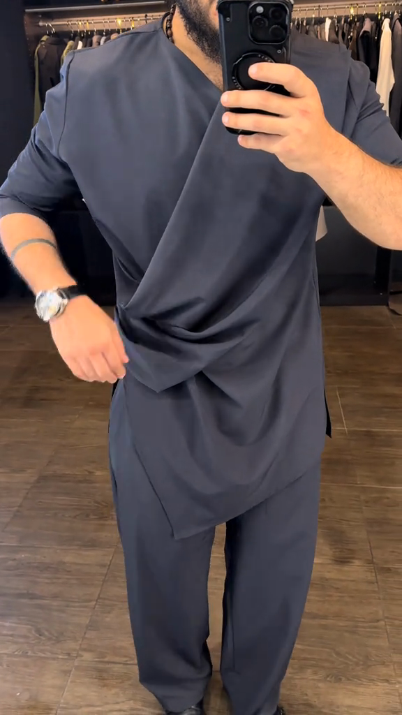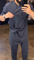 Charcoal Asymmetric Tunic - Style Top & Pant Set