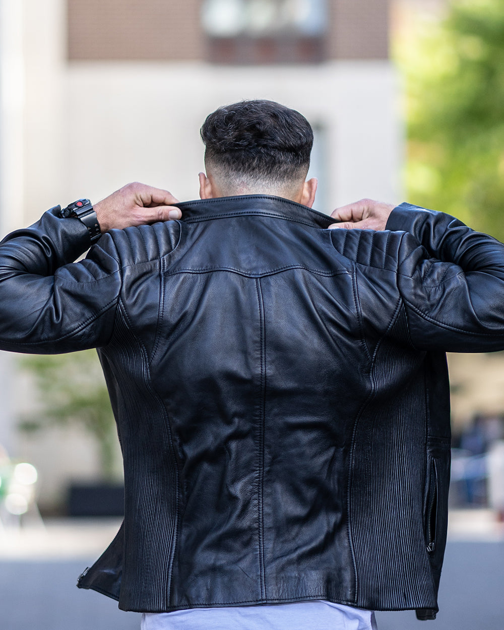 Cleve's leather jacket is Lusso Leather's High-Quality jacket made of Full grain Lambskin leather that is mostly wear for casual evening out for drinks with friends, to a graduation party, and to beach walking. Full grain Lambskin leather is Soft, Flexible, Smooth and Thinner than most leathers. It is the outermost layer of hide and is the strongest layer of hide because the fibers are vertically integrated and highly ordered.