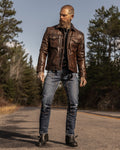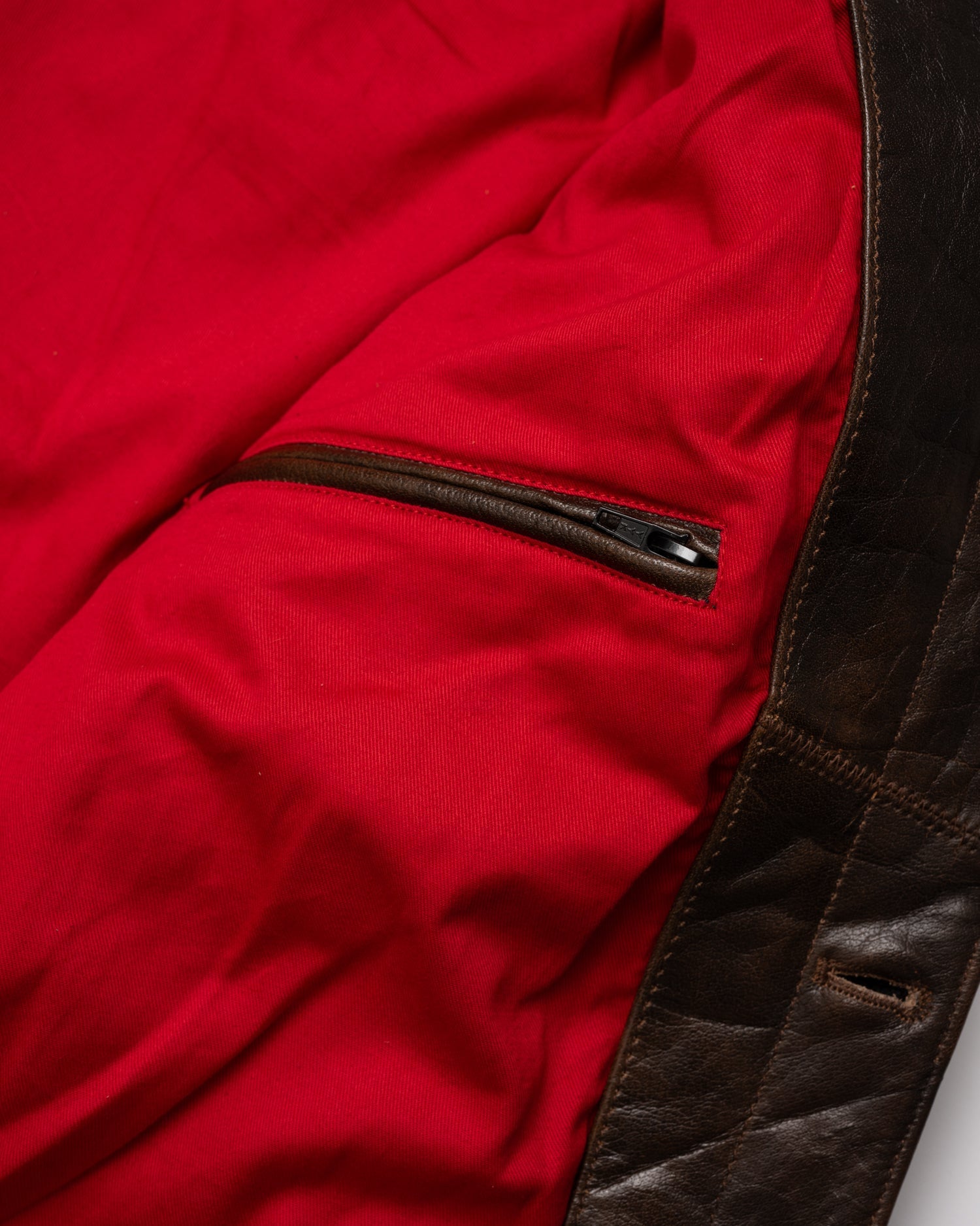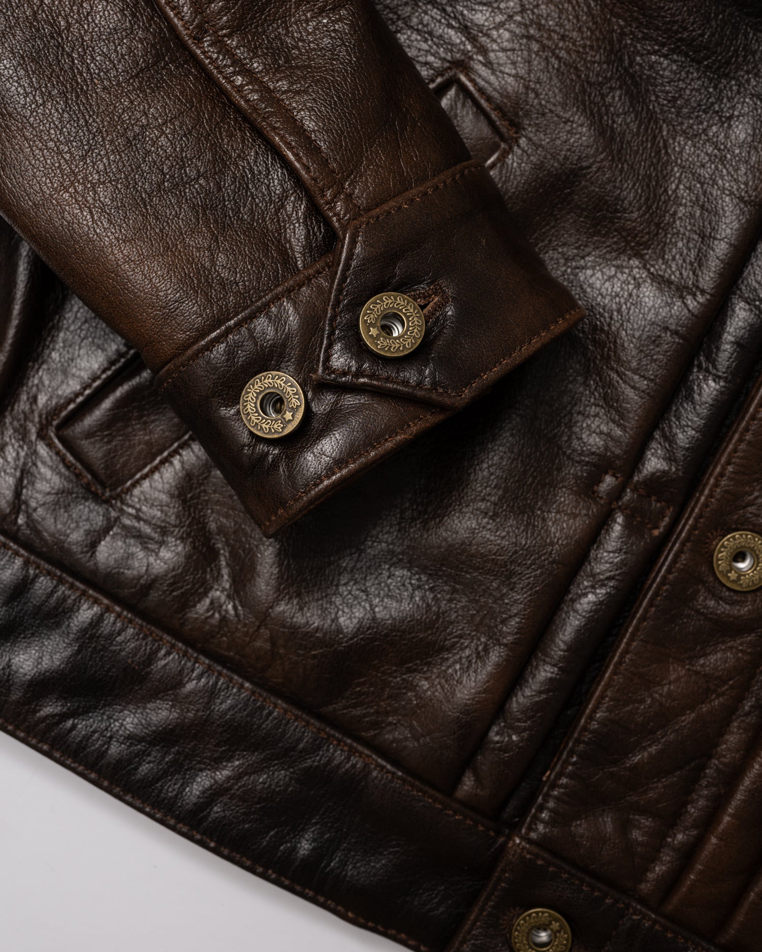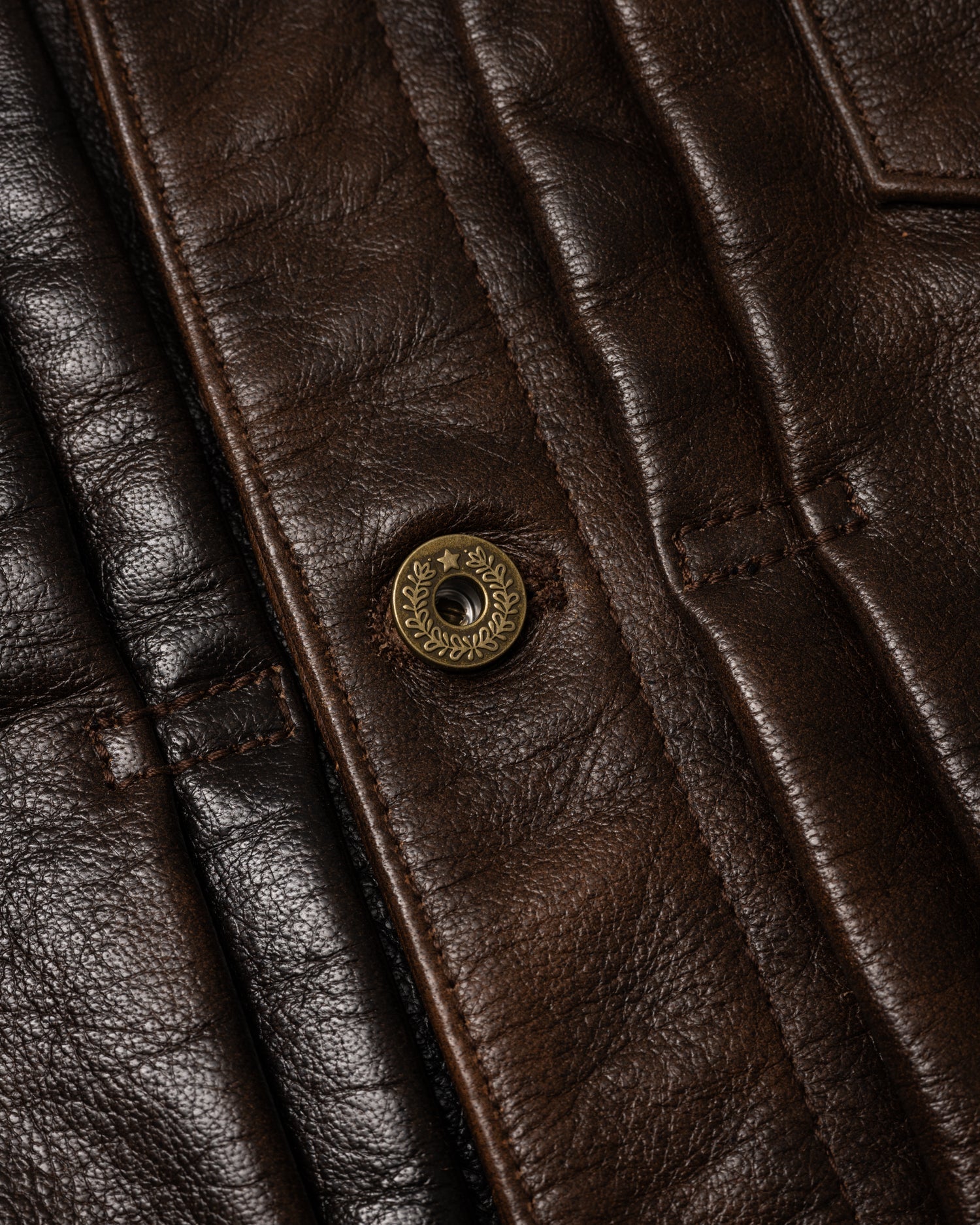 Introducing The Convoy Rust, the latest iteration of our iconic Convoy jacket, now crafted in our deep, mahogany buffalo leather. This rich, earthy tone exudes a rugged character that will develop a distinctive patina over time, making each jacket a testament to your journey.