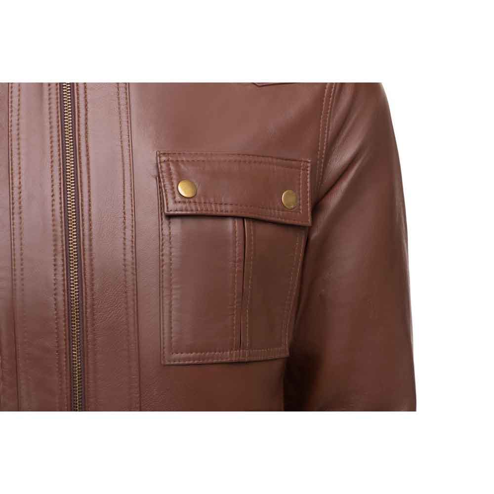 Gangster-vibe clothing adds a different type of charm to your personality, so go for this Brown leather jacket with a collar belt if you’re looking for something like that.