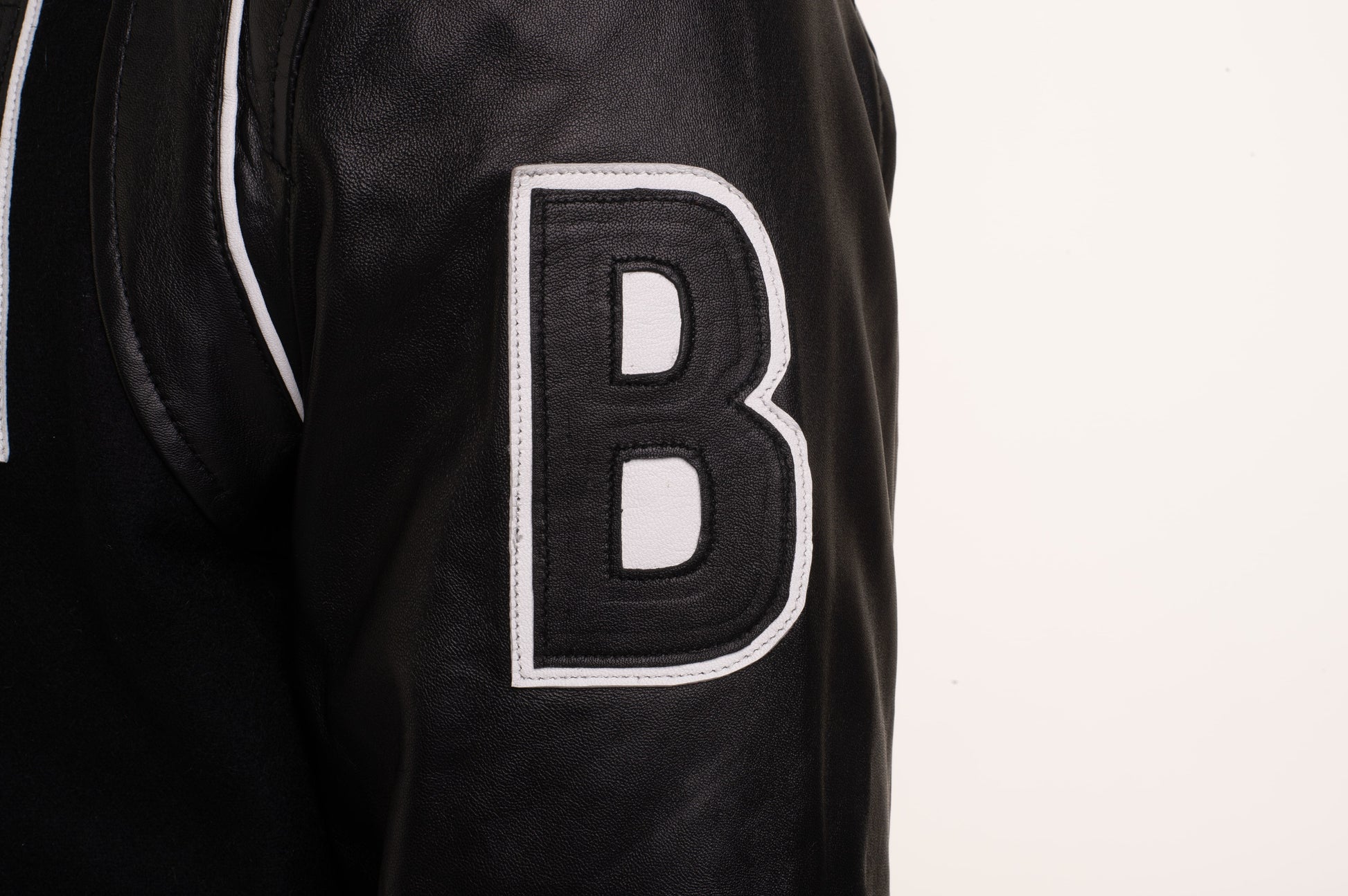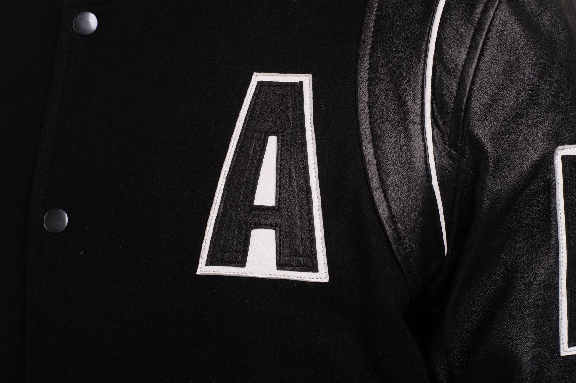 The Darrel's Varsity leather jacket with leather lettering is a stylish and durable jacket made from premium quality leather. Featuring leather lettering on the chest and shoulder, this jacket adds a touch of personalization and individuality to your style. With its classic varsity style design, including a ribbed collar, cuffs, and waistband, and a snap button closure, this jacket is perfect for any occasion. Whether you're headed to the game or out on a date, the Darrel's Varsity leather jacket is the perfect addition to any outfit.