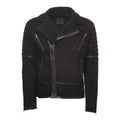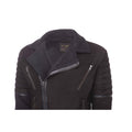 Do you love wearing biker jackets to make your rides more fun? This time, we have something more exciting for you. It is David black suede biker jacket with Sherpa which is a great biker jacket for you. It has been manufactured with full-grain leather material. It contains satin polyester lining inside as well. Detailing like asymmetrical zipper closure with lapel-style collar and open hem zipped cuffs looks fascinating. There is one pocket inside and four zipper pockets outside