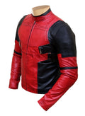 Show off your refined sense of style in this Deadpool Red and Black Cosplay Jacket. This stylish accessory will make you stand out as someone of significance, wherever you go. Manufactured with full-grain leather material along with an inner satin polyester lining on the inside. The key features include a buttoned round collar along with front zipper closure and full-length sleeves with open hem cuffs all are contributed to its dynamic looks. Deadpool Red and Black Cosplay Jacket is the ultimate fashionable outwear.