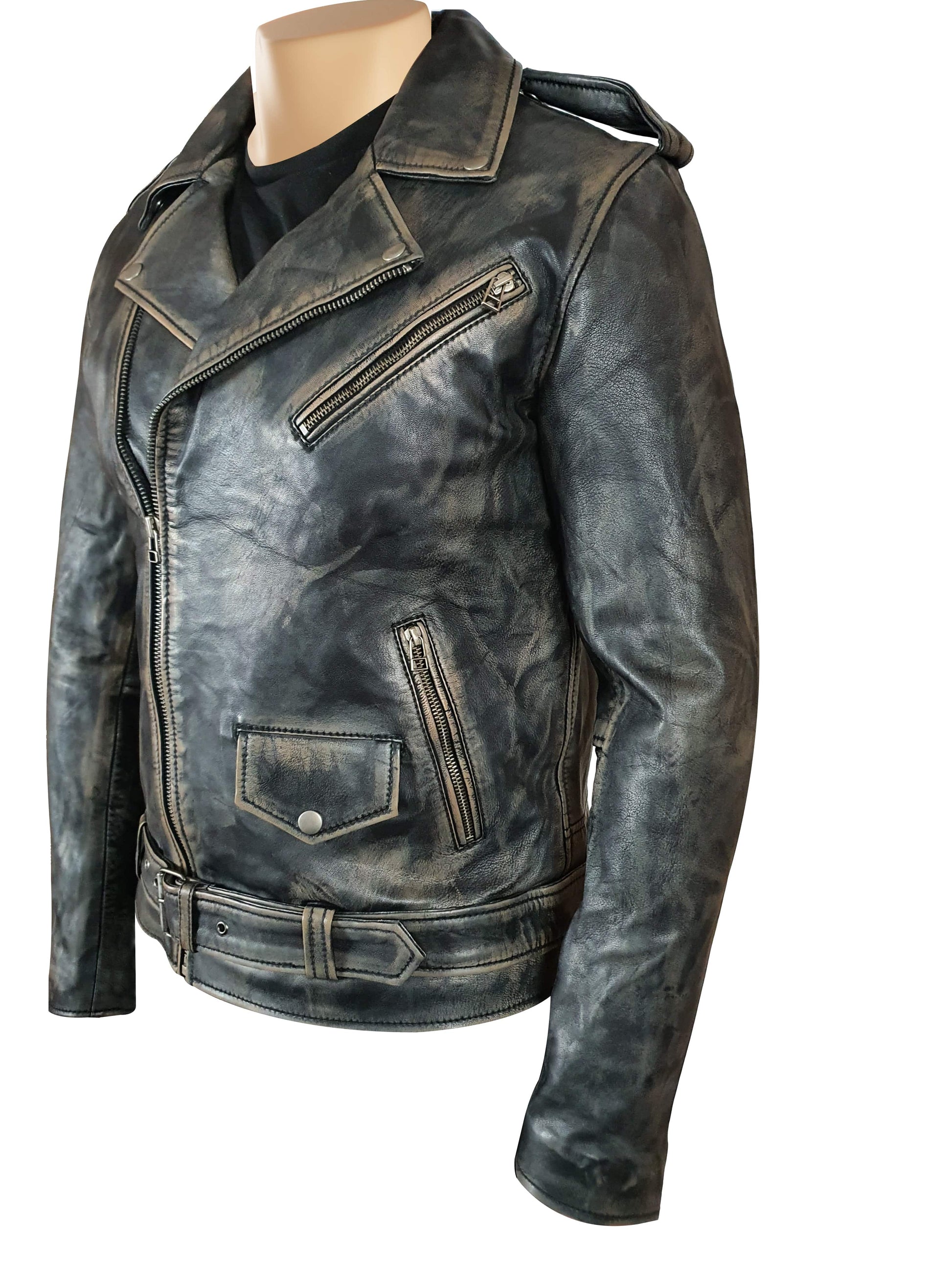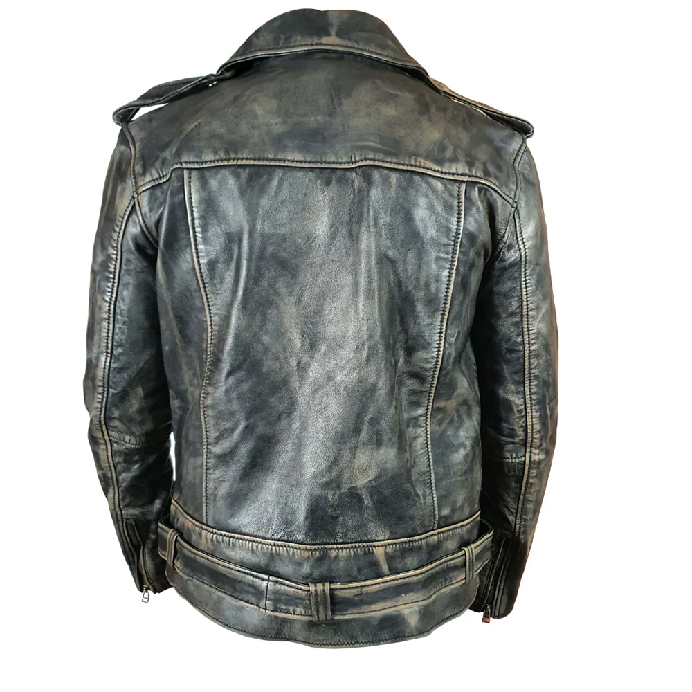 Distressed Biker style jacket with belt