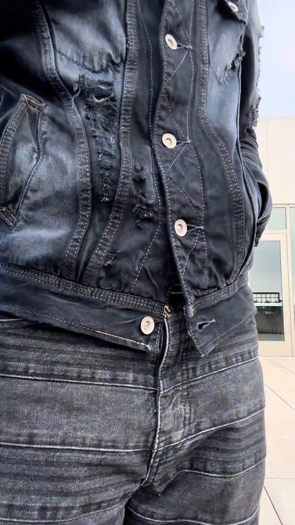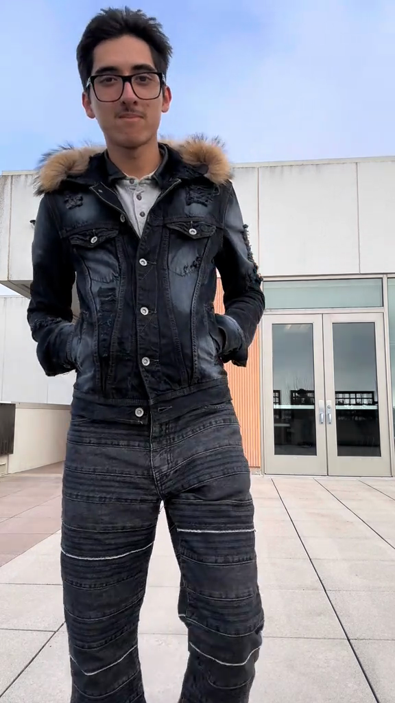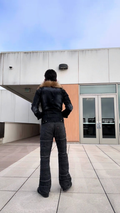 Distressed Black Denim Jacket with Fur - Lined Hood