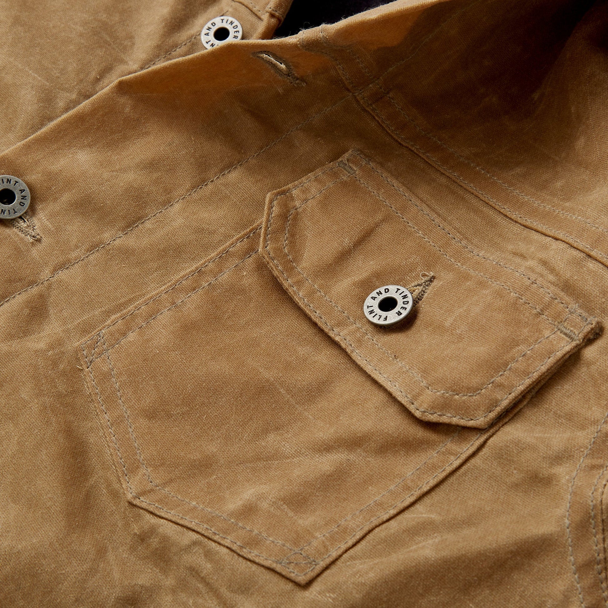 Flannel Lined Waxed Trucker Jacket in Field Tan