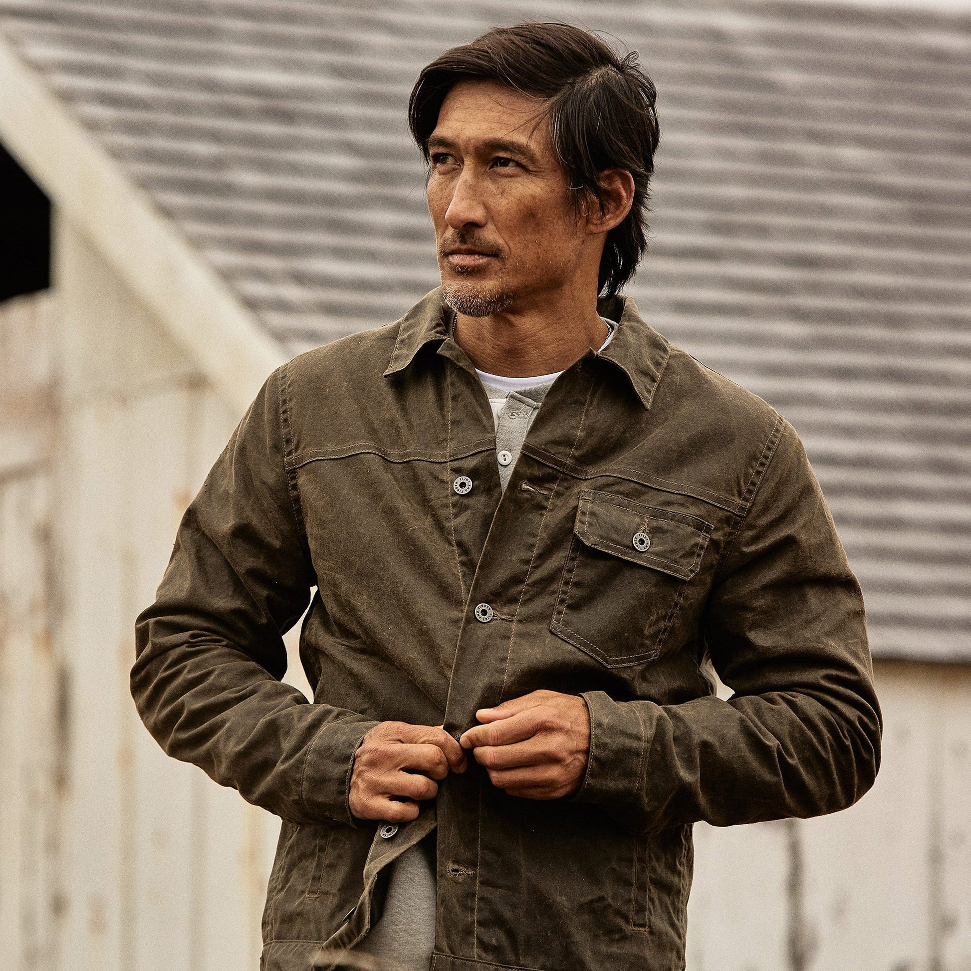 Martexin 7 oz. sailcloth, like selvedge denim or finely tanned leather, will only get better with age. It's manufactured in Bridgeton, New Jersey by Fairfield Textiles—a renowned US fabric mill that's been around since 1930. To make the fabric in this jacket, 100% cotton is woven into a strong canvas material called sailcloth, and then gets coated in Martexin Original Wax for weather-resistance and enhanced durability.