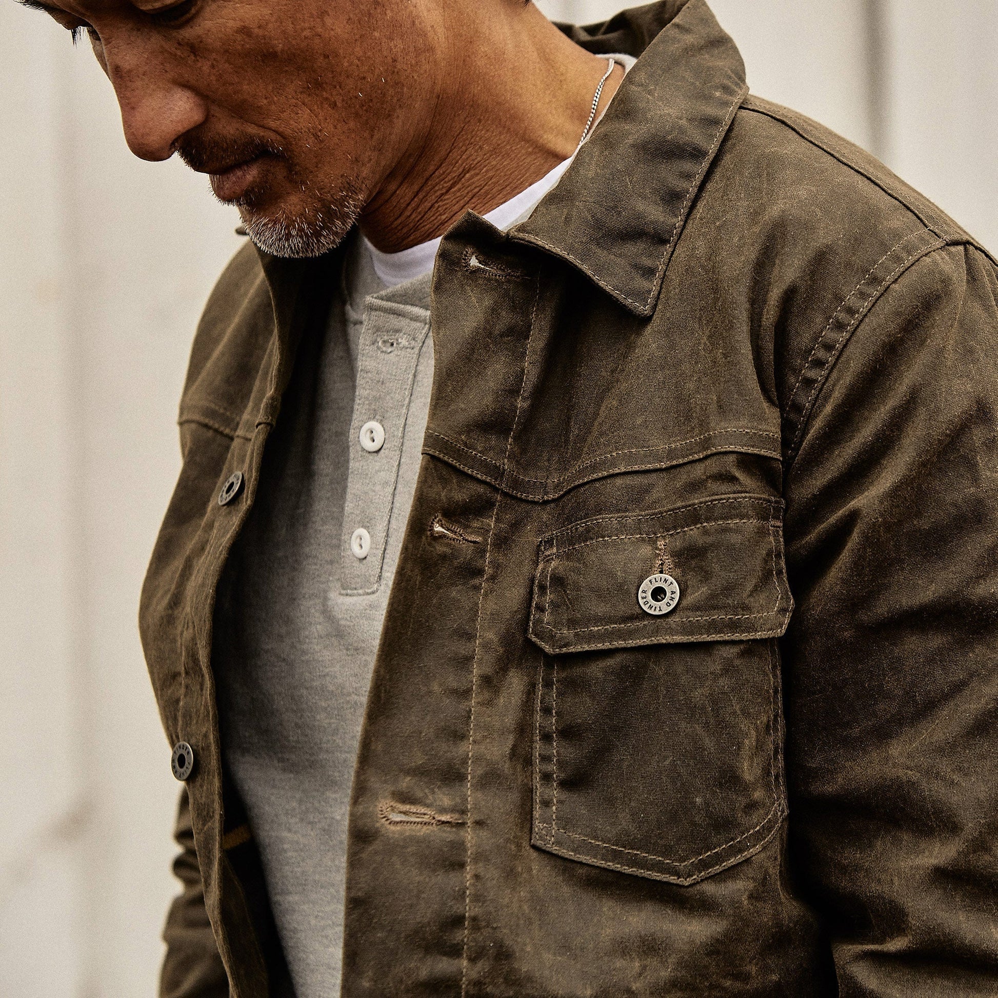 Tough, timeless, and made in the USA, this men’s waxed canvas jacket is constructed with a waxed and weather-resistant Martexin 7 oz. sailcloth, which like selvedge denim or finely tanned leather, will only get better with age. With every adventure, the waxed fabric will develop a unique patina, creasing and bending to mark your own unique wear patterns. It's truly a thing of beauty and why every guy needs a Waxed Trucker in their closet. And unlike most of the other Waxed Truckers on the market, this jacket is soft out of the box and can even be worn only with a tee underneath since both the body and sleeves are made with a soft blanket lining. For the price, you simply can't beat the quality, construction, and versatility of this bad boy.