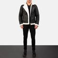 Francis B-3 Distressed Black Leather Bomber Jacket