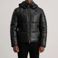 Gordon Black Hooded Leather Puffer Jacket