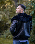 Gregos Varsity Style Sheepskin Shearling Jacket with Large Hoodie