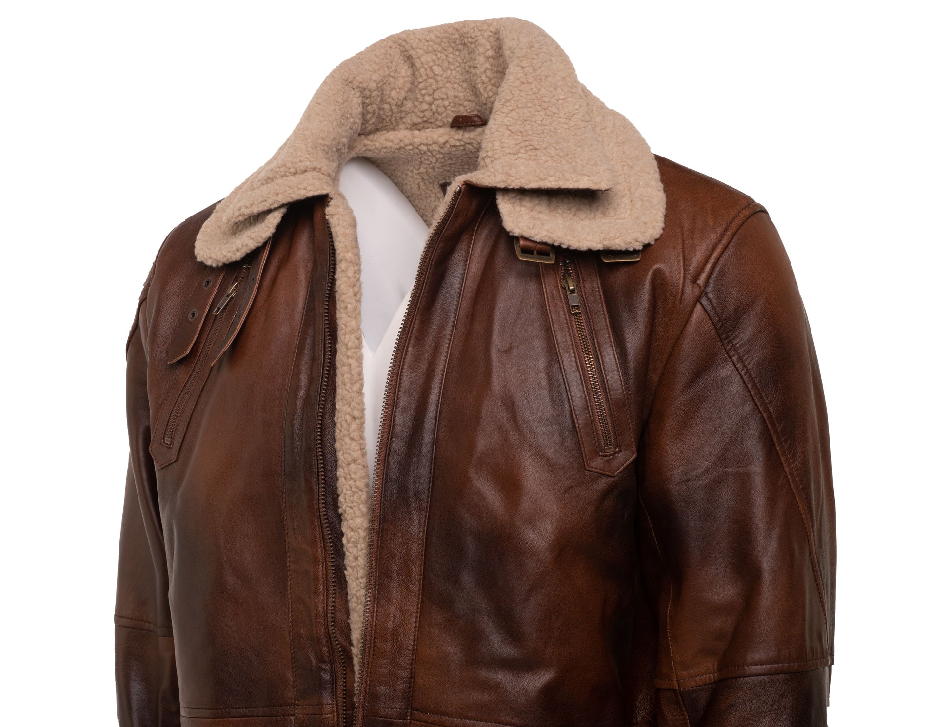 Vintage Rust 3/4 Leather Trench coat with Sherpa Lining