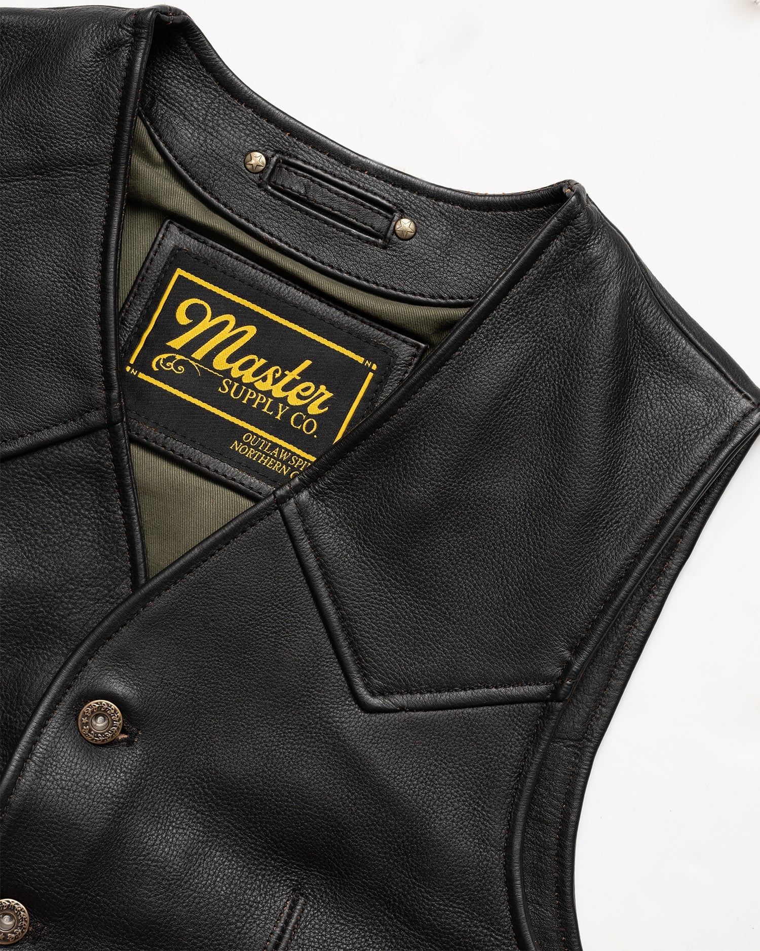 Introducing the High Noon Vest: Crafted from semi-vegetable-tanned 1.5mm cowhide and inspired by our Gunslinger silhouette.