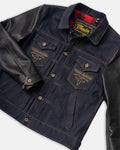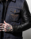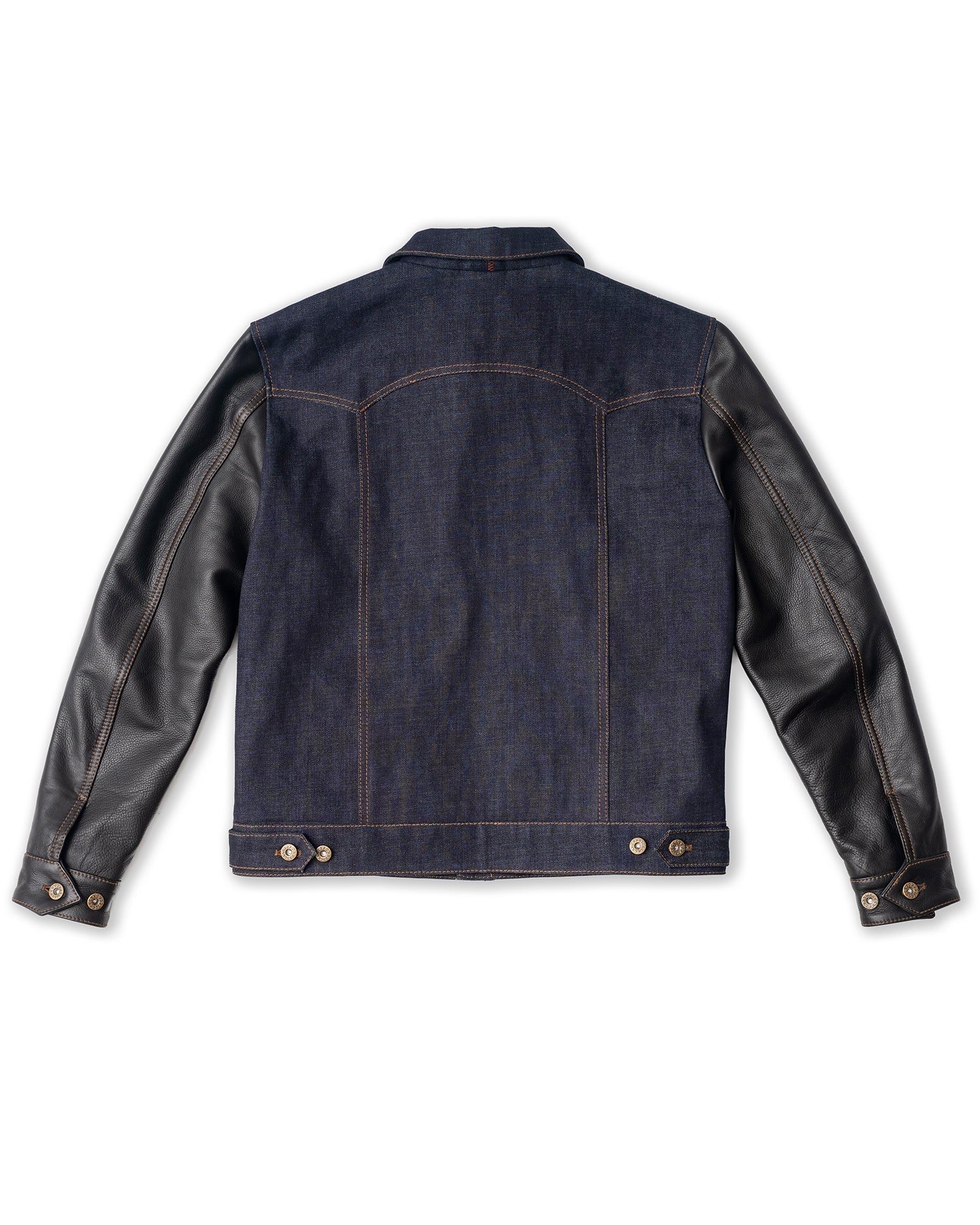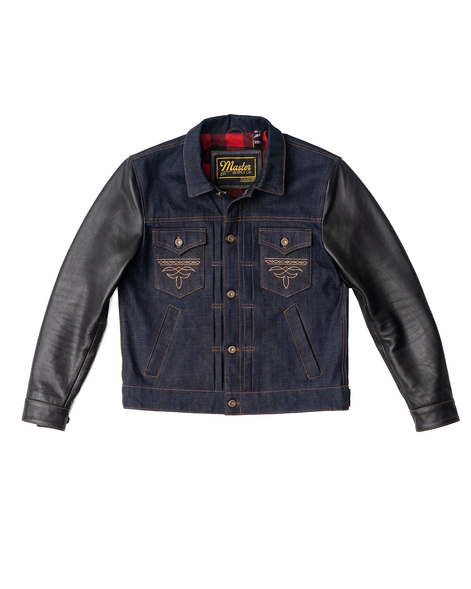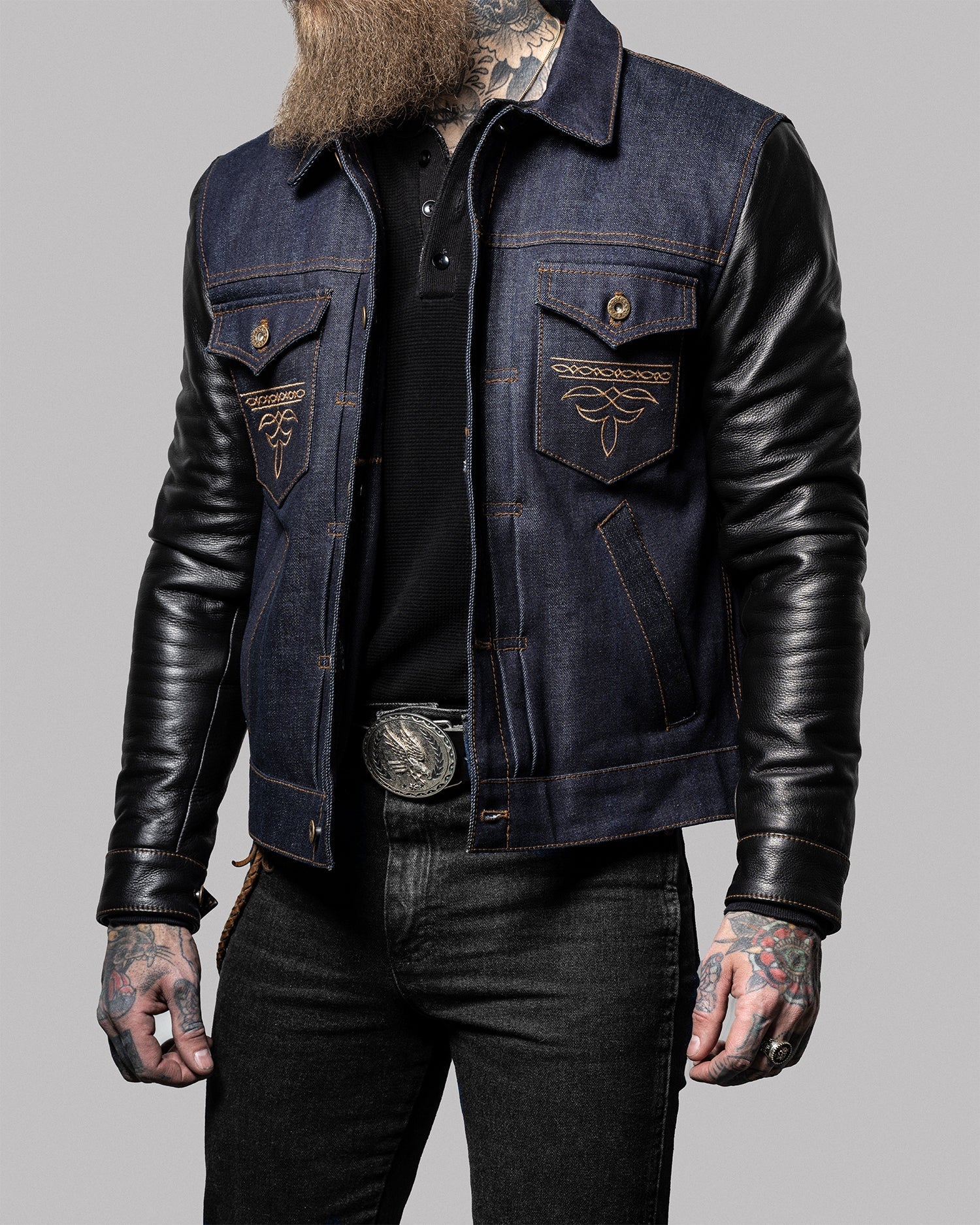 The Ironhorse is made with our popular 13oz selvedge denim and our classic full-grain cowhide. The jacket is tied together with copper threading and is lined with a cotton buffalo plaid liner.