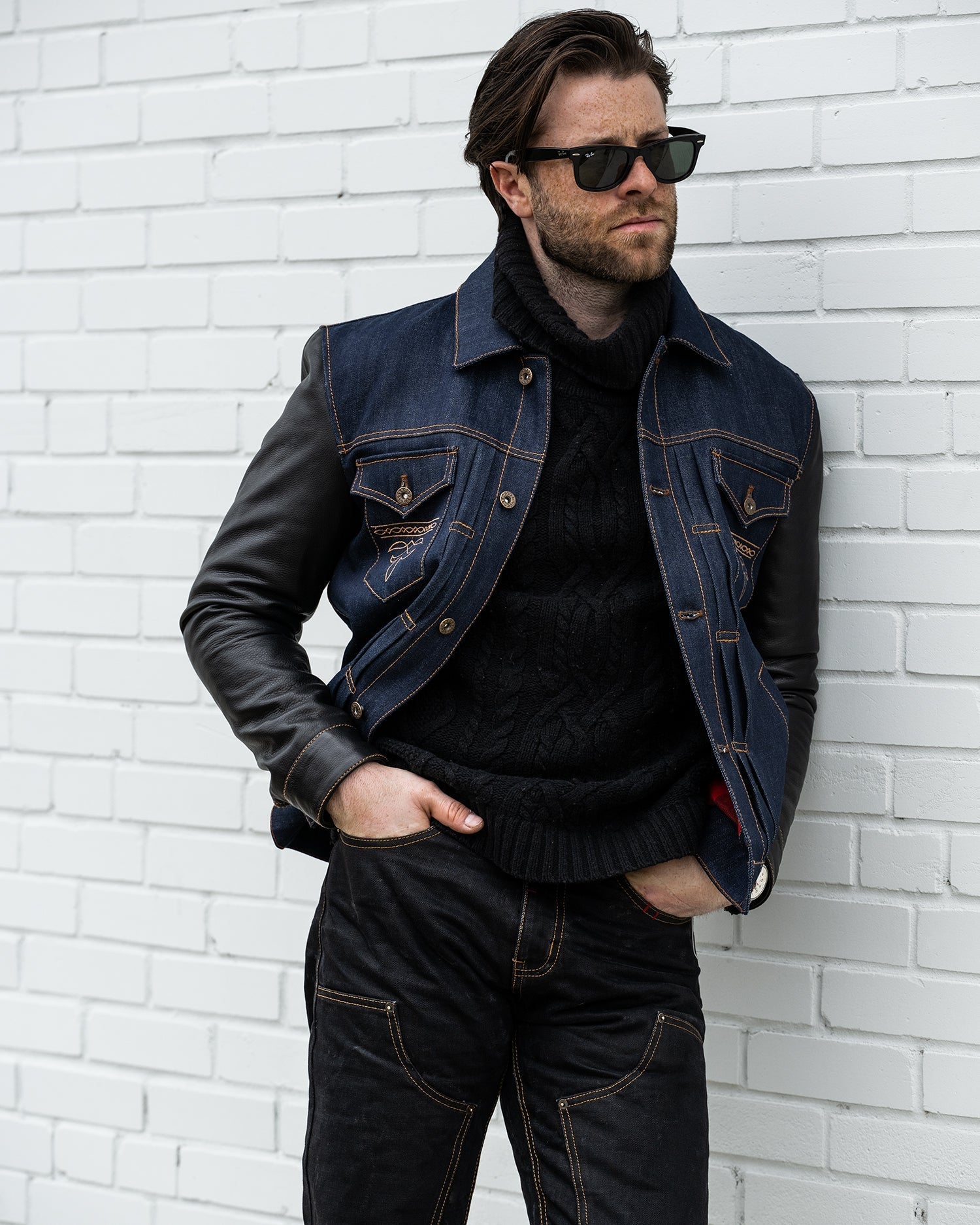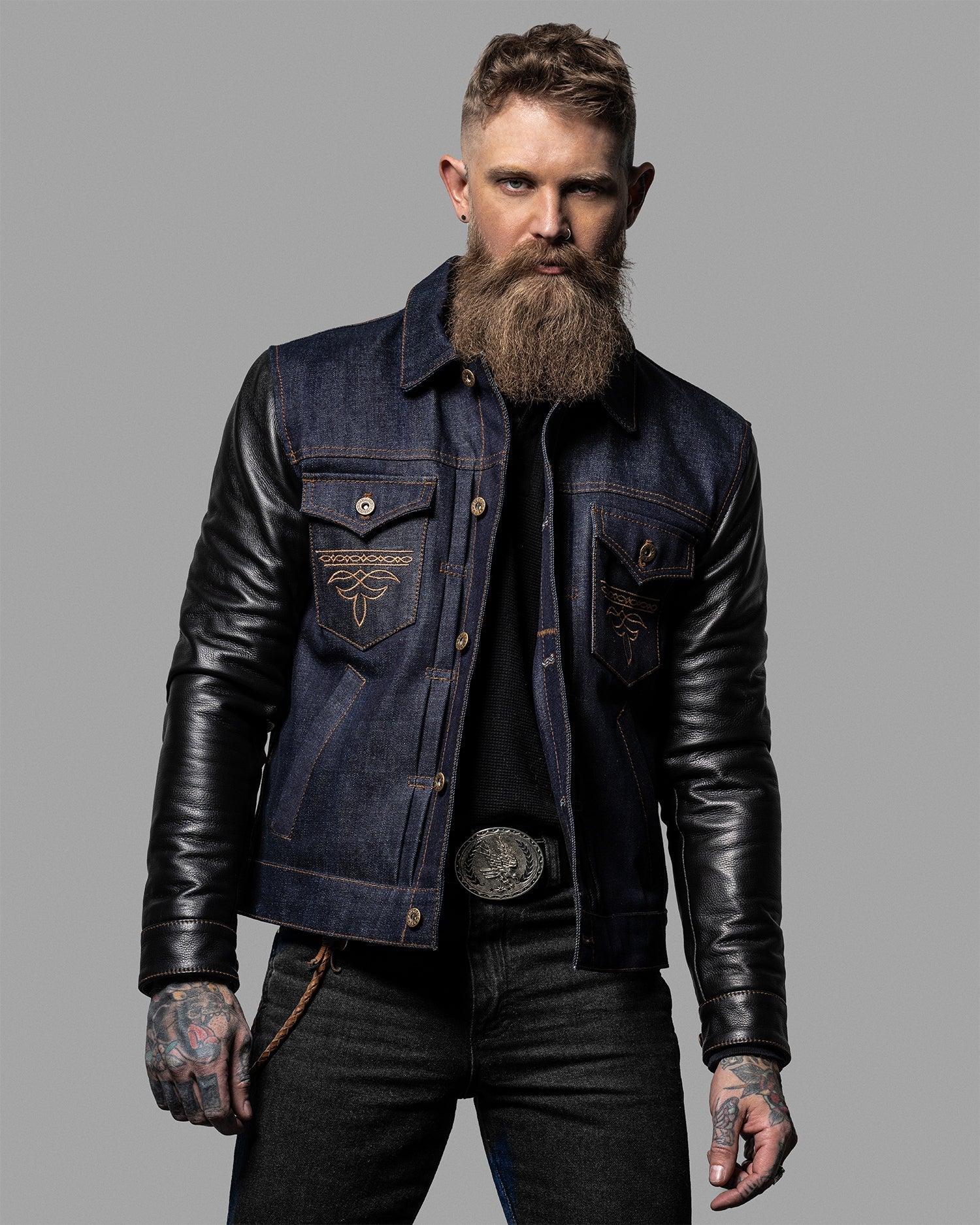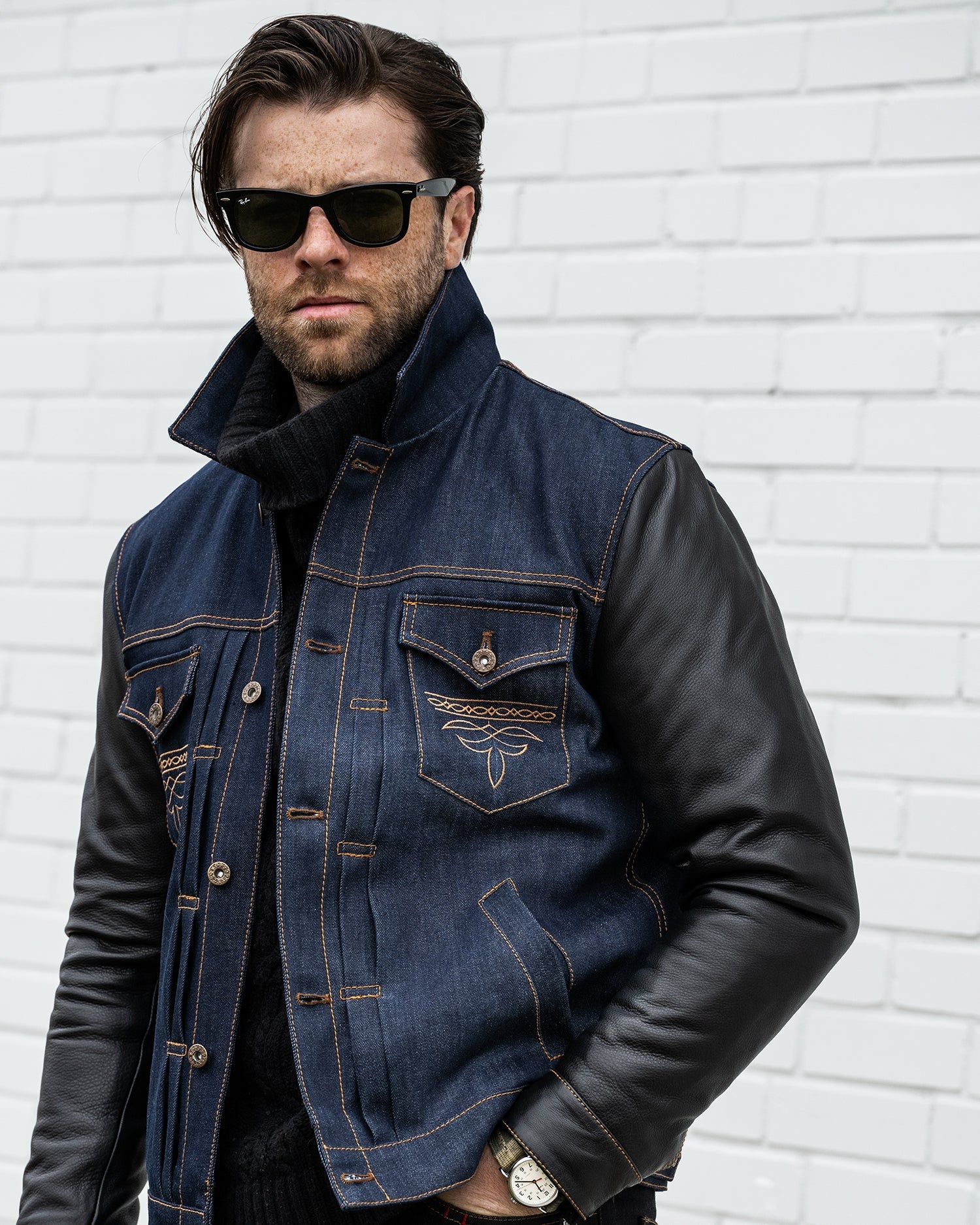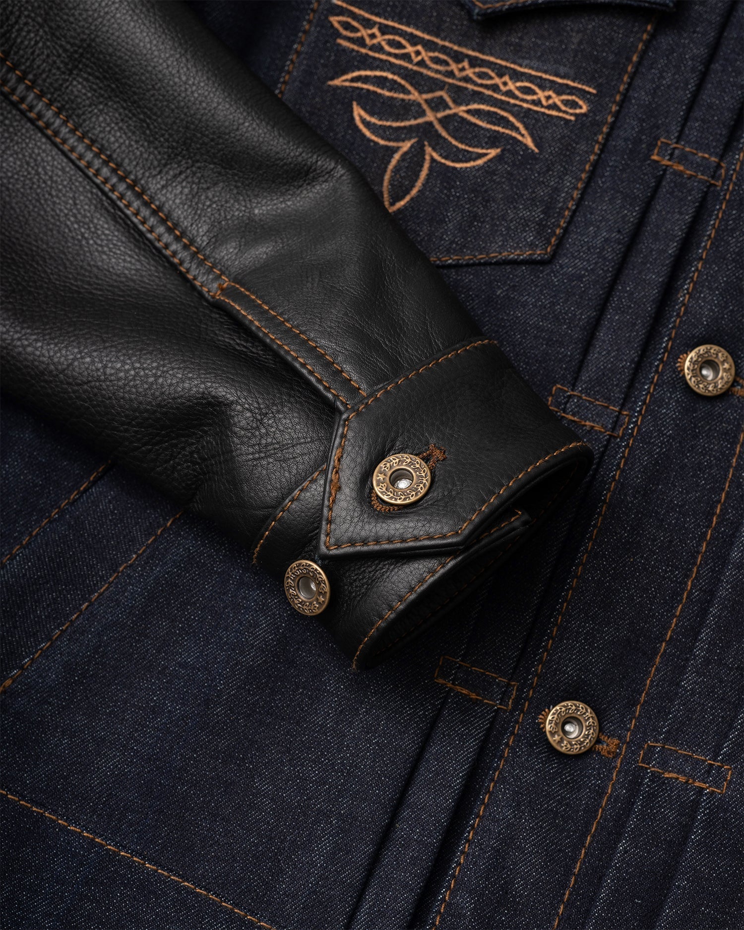 The Ironhorse is made with our popular 13oz selvedge denim and our classic full-grain cowhide. The jacket is tied together with copper threading and is lined with a cotton buffalo plaid liner.