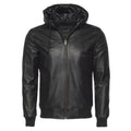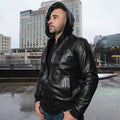 Get everyone on edge by donning a unique jacket. Our Jayden Black hooded Bomber Leather Jacket is something that can fulfill your needs. This timeless piece has a Zipper Closure, round collar, ribbed cuffs, and hem. Wear this exceptional leather jacket which has one pocket inside and two front zipper pockets outside with one side pocket to keep your belongings safe.