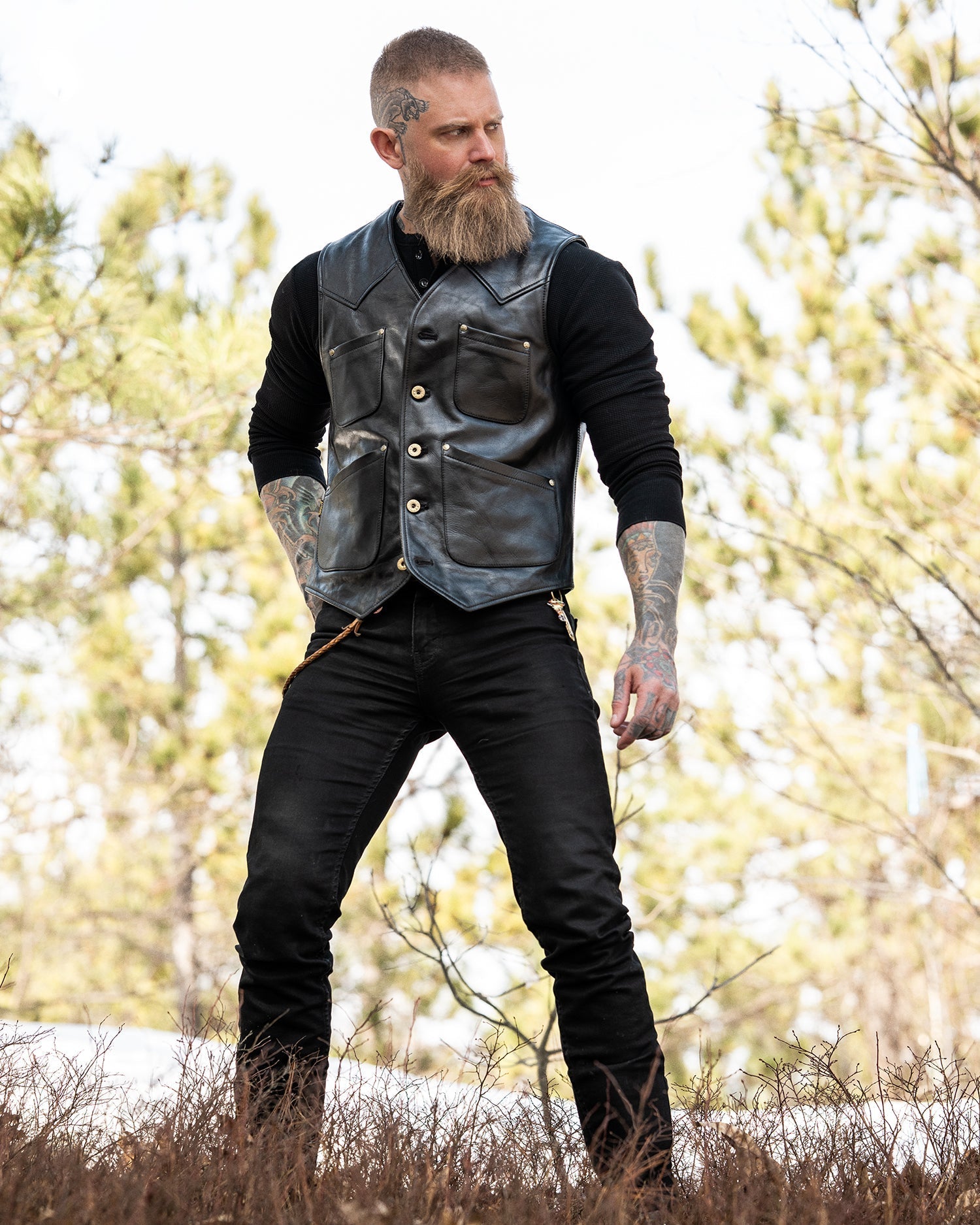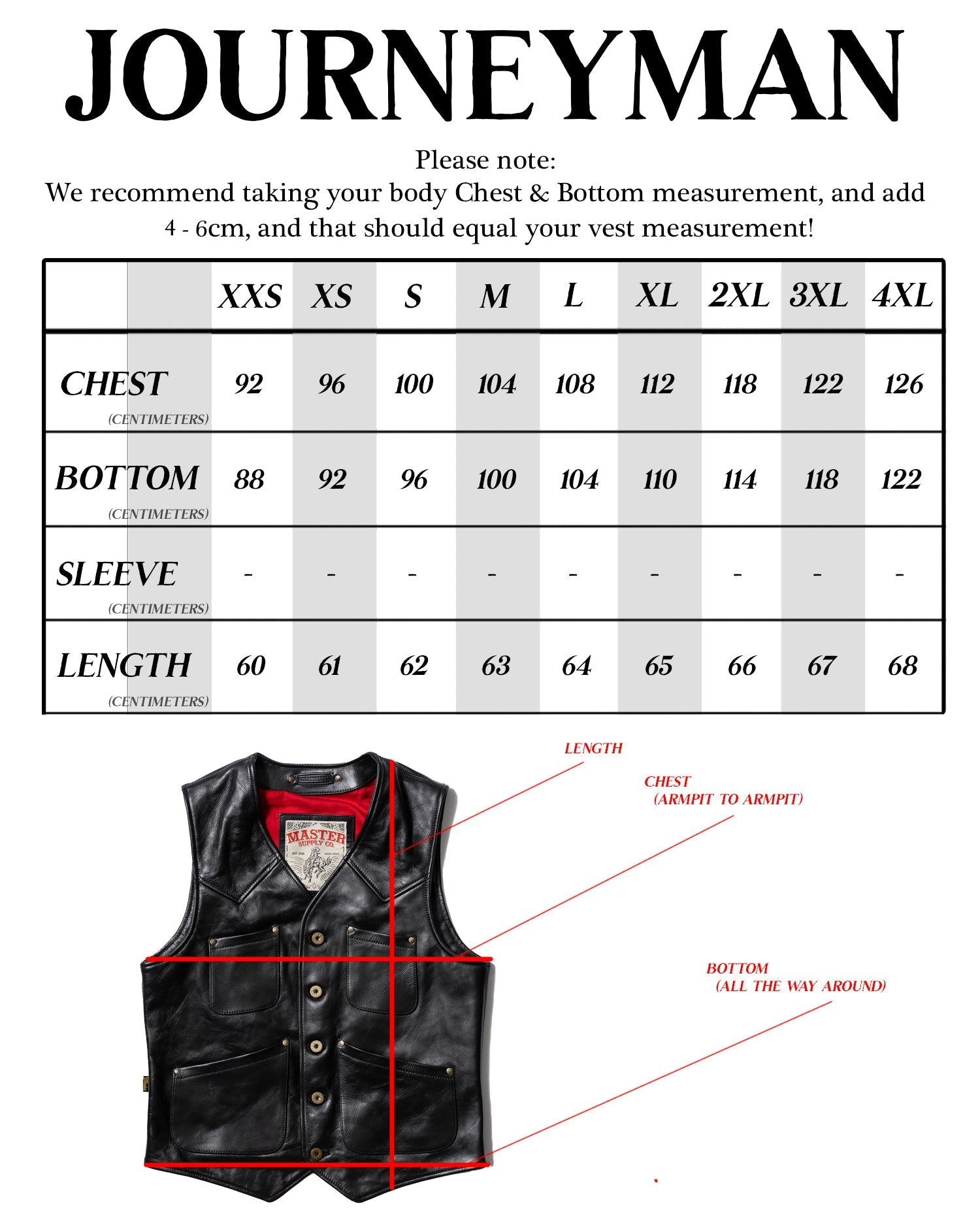 The Journeyman is a utility-driven waistcoat built with purpose—cut from 1.5mm full-grain, vegetable-tanned cowhide and made to carry what matters. It’s sized down from our jacket blocks for a closer, more traditional waistcoat fit that wears clean and layers well.