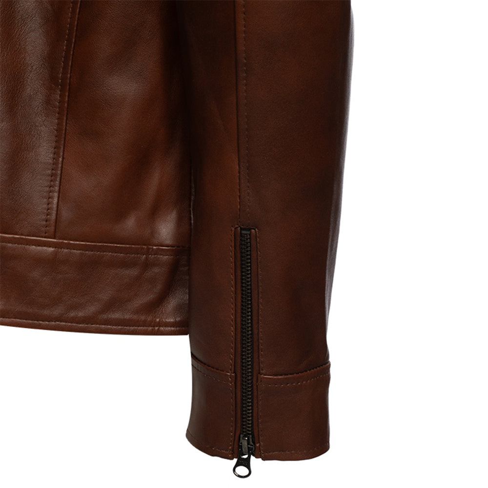 Looking to spruce up your evening attire? Purchase this stunning Kai Classic two tone brown leather jacket for many praises. Brown jackets are quite popular since they are the most trendy choice. This wonderful leather jacket has been manufactured with top-grain leather and features a zipper closure, spread collar, and open hem cuffs in order to give attire a stylish appearance. It has one pocket inside and two side pockets outside for the storage of valuables.