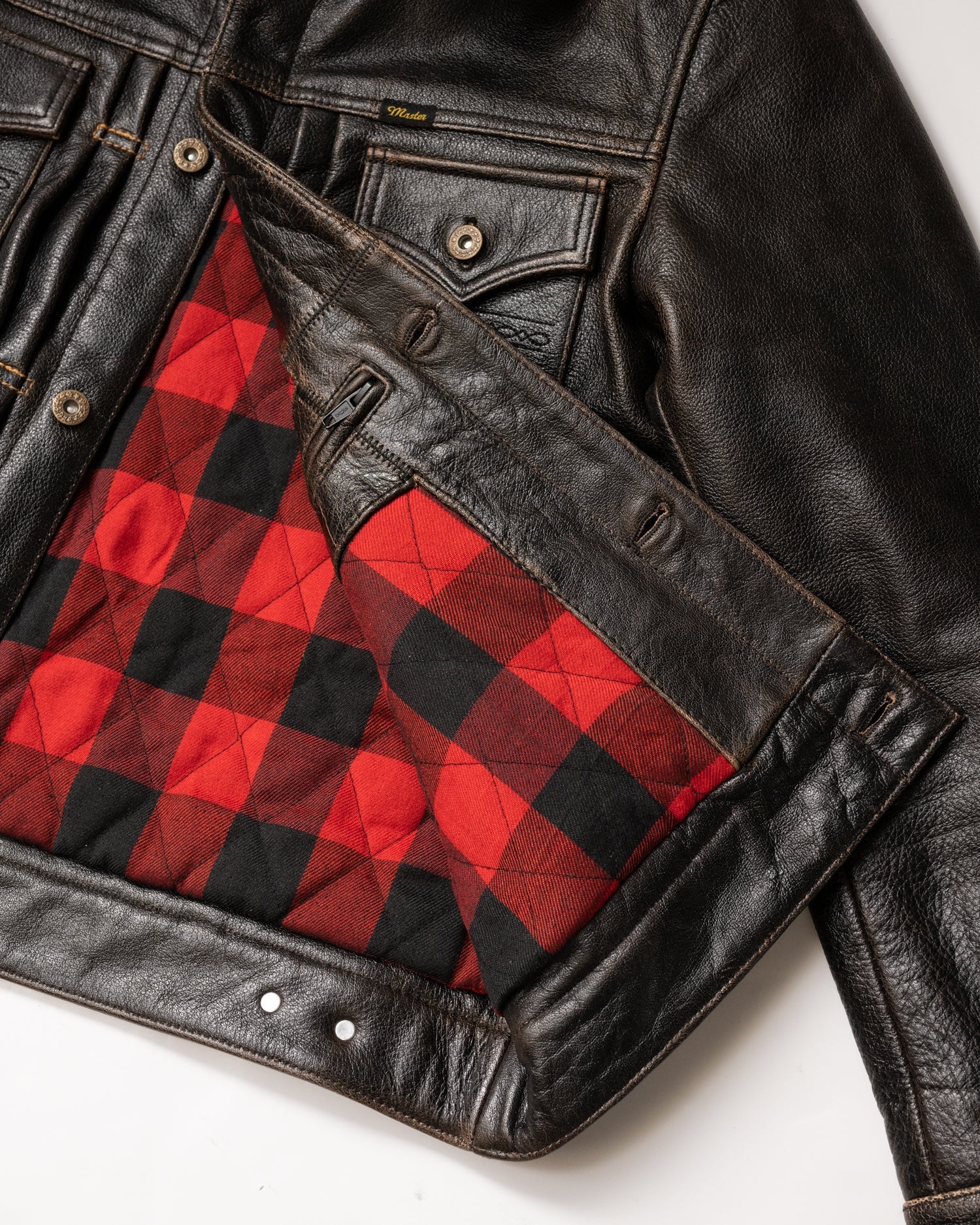 For added warmth during colder months, the jacket includes a shearling collar and a 100% cotton buffalo plaid liner with light insulation. Every aspect of the Mark-IV reflects our dedication to quality and craftsmanship, embodying our journey towards perfecting this iconic design.