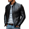 Men's Fashion Crocodile Leather Stand Collar Single Breasted Slim Fit Jacket 22007630M