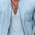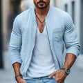 Men's Fashion Solid Cotton And Linen Stand Collar Chest Pocket Zipper Jacket