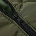 The outer fabric and filling are stitched together with dense threads, creating a rich three-dimensional texture. The fine-toothed zipper is both thoughtful and tactile, adding a touch of sophistication.