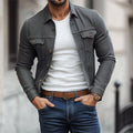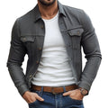 Men's Spring and Autumn Dark Grey Twill Lapel Jacket